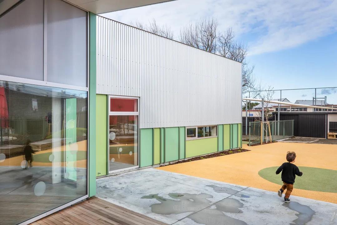 该项目是在相对紧张的预算下建造的,它是基于一个预制的Coresteel屋檐棚结构,在街道边缘有一部分屋顶被抬高,以标志着建筑的存在。彩色面板和垂直韵律被用来强调这一点,并引导游客进入建筑。随机放置的圆形窗户使孩子们能够与街道上的活动接触,反之亦然。