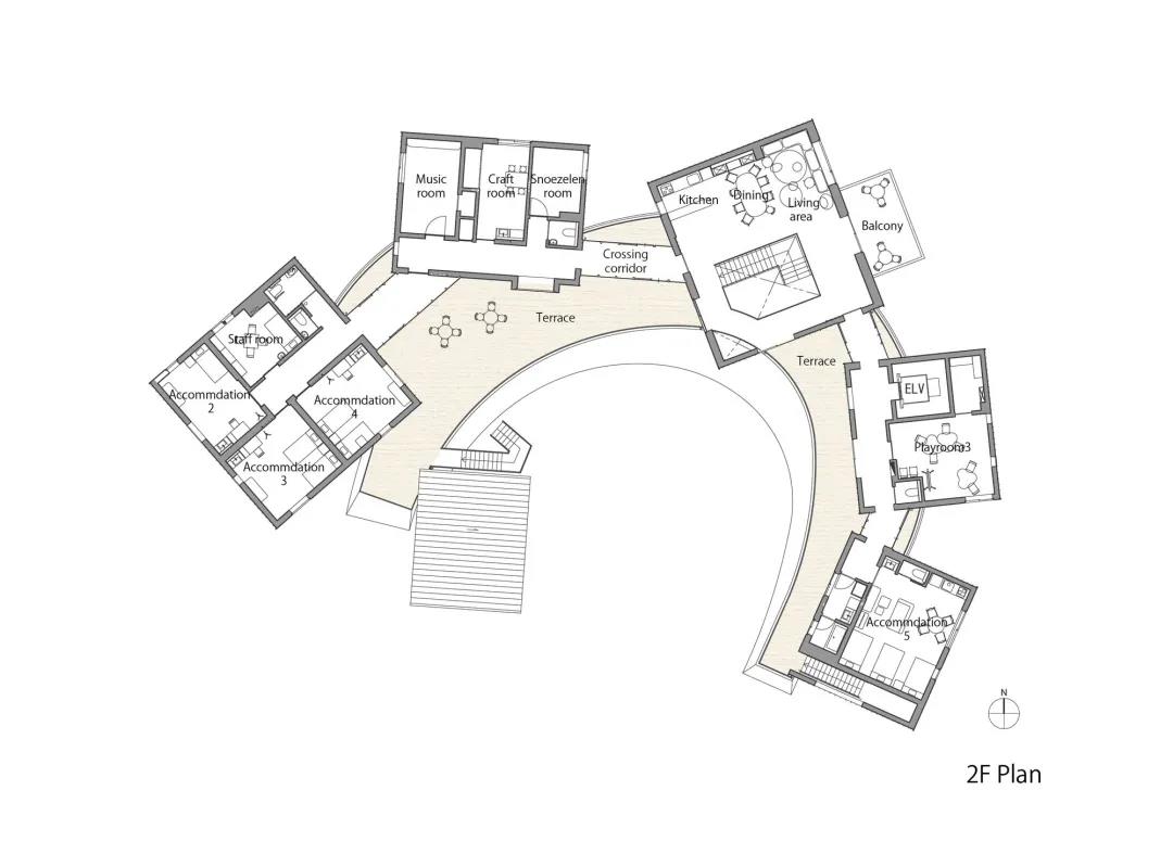 建筑师的目标是创造一个打动人心的温和场景。我们提出了一个大概念,赋予了形状,并为在那里度过的儿童和家庭,以及支持他们的人设计了一个充满乐趣和小发现的地方。我们希望这一景象能激发人们对儿童及其家庭的同情,并希望支持的圈子能在整个社区、社会和日本传播。此外,这个建筑和愿景将成为第二个和第三个社区支持的儿童临终关怀医院的指路标。