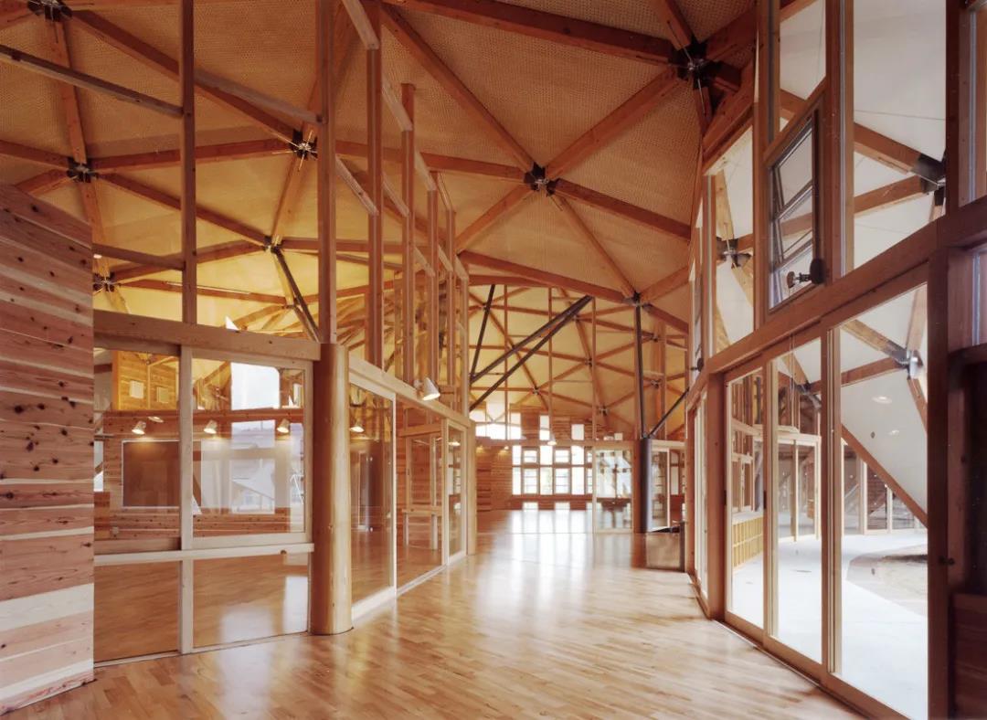 从大阪乘坐新干线到这个幼儿园大约需要45分钟的时间,附近是新开发的住宅小区。建筑的每个房间有一个木制屋顶。壳形屋顶是由三角形的连续表面构成;它的结构强度和几何一致性保证了在必要的空间中极大的设计自由度。