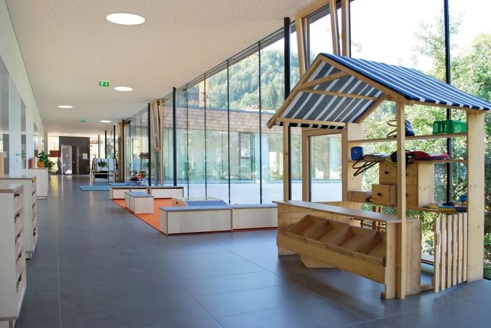 大部分的房间都是位于东侧的,以获取充足的太阳光,另有一个幼儿室的扩建部分位于南侧,同样也能享受充足的阳光。