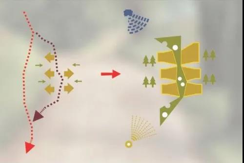 在设计方案中,幼儿园和周围的树木以及游乐场设施紧密的连接在一起。整体概念和当地建筑类似。因此,这个幼儿园的规模并不会太大,孩子在这里有一种家的感觉。