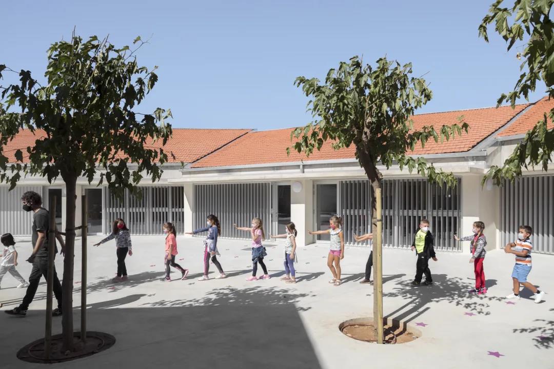 经过复杂的施工过程,由于2020年新冠疫情而连续停顿。该建筑按时完工于新的开放学年,由于COVID的持久性,他们将需要采取极端的卫生措施并扩大教学空间。